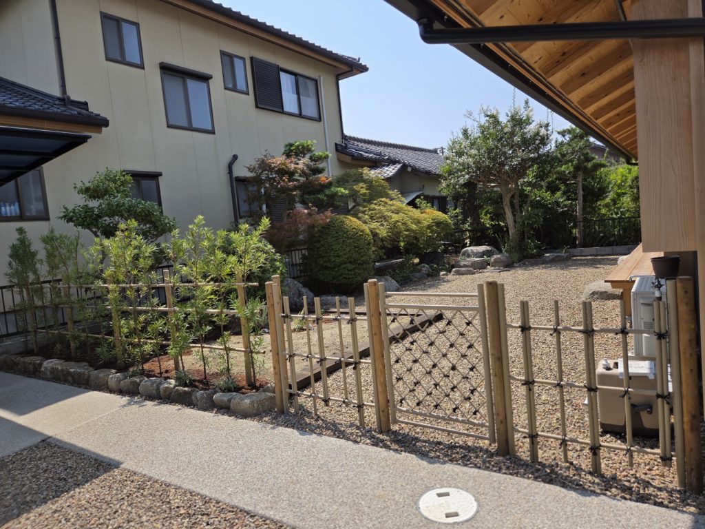 自然な仕切りのプライベートの入り口は折戸と竹は再利用しました^^