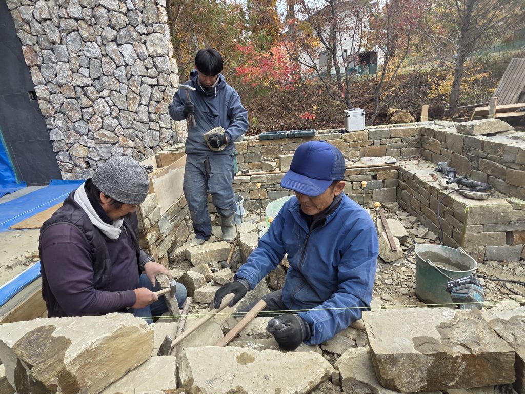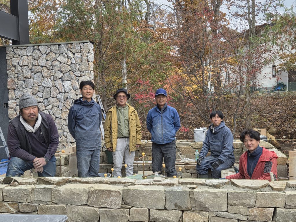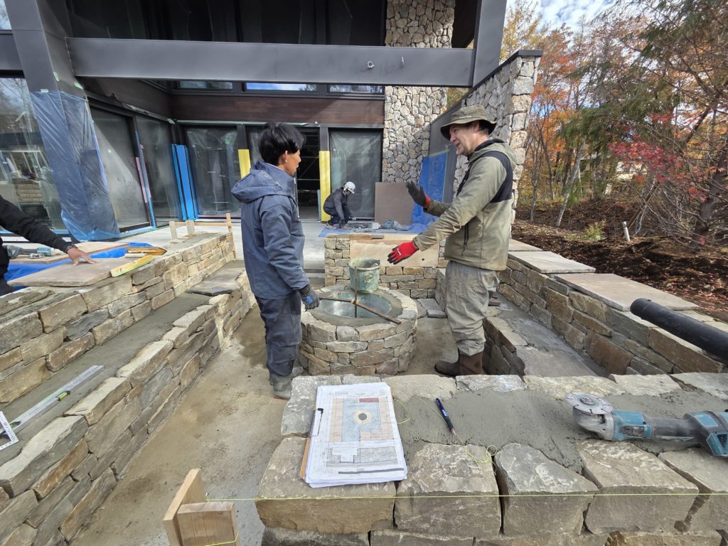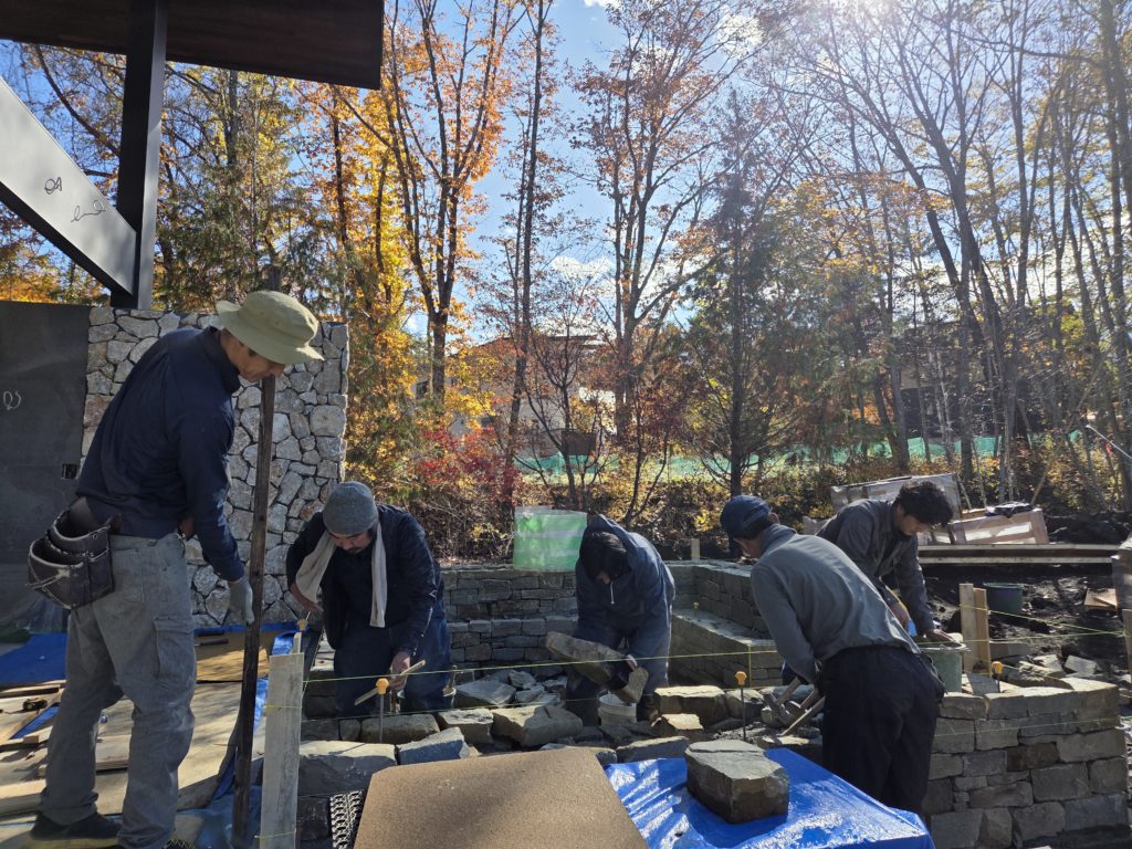 昨年度は富士山が良く見える河口湖付近の別荘地にてガーデナーのニコラスレナハン様のご依頼のお仕事でファイヤーピットの工事に携わらせていただきました。とても紅葉が綺麗で素敵な場所での作業でした。